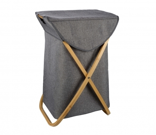 • סל כביסה מתקפל מבד עם בסיס במבוק עמיד ואיכותי, בגימור יפהפה