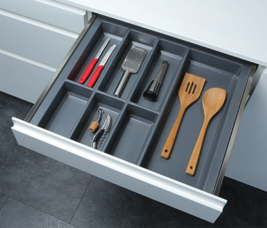 • המגשים מתאימים למגירות בטווח גדול של מידות רוחב: 1260-300 מ"מ